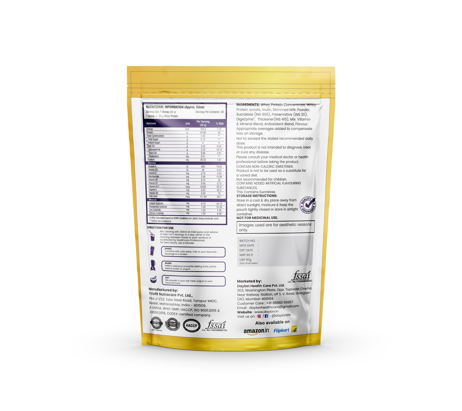 Daylon Premium Whey Protein is a high-quality health supplement designed to support muscle recovery and help build lean muscle protein. Sourced from grass-fed cow’s milk, this premium whey delivers superior protein quality with excellent taste and easy digestibility.